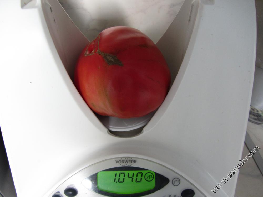 Къснозреещ, висок, индетерминантен сорт за оранжерии. Изисква подравняване и формоване. Подходящ за салати, сокове и сосове. | Плоско-кръгли, едри, месести, розово-червени, 400-800 г. При отглеждане в открита земя теглото е от 200 г. |