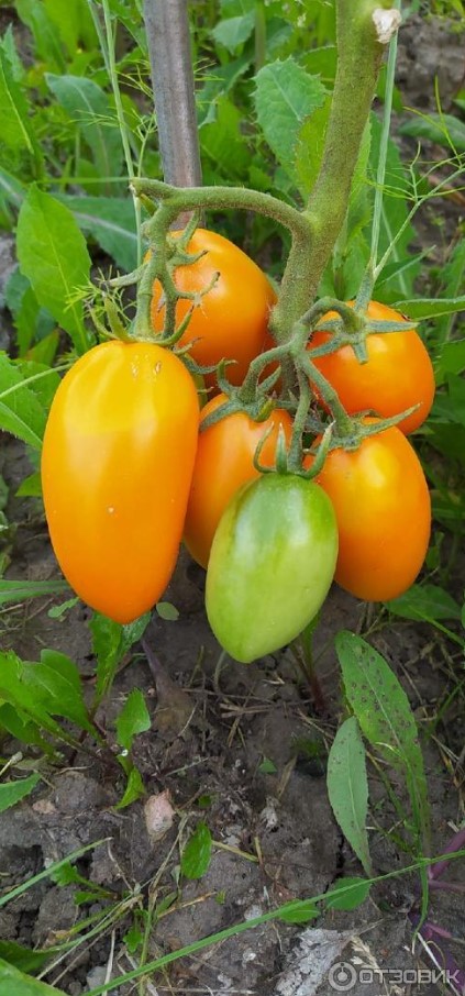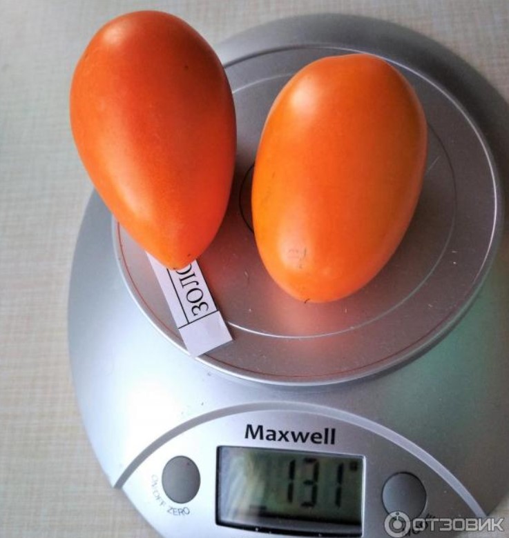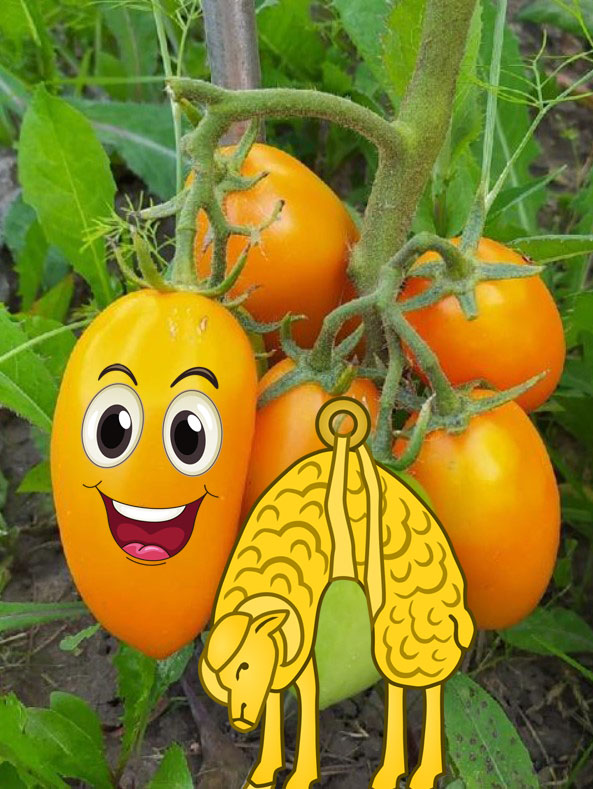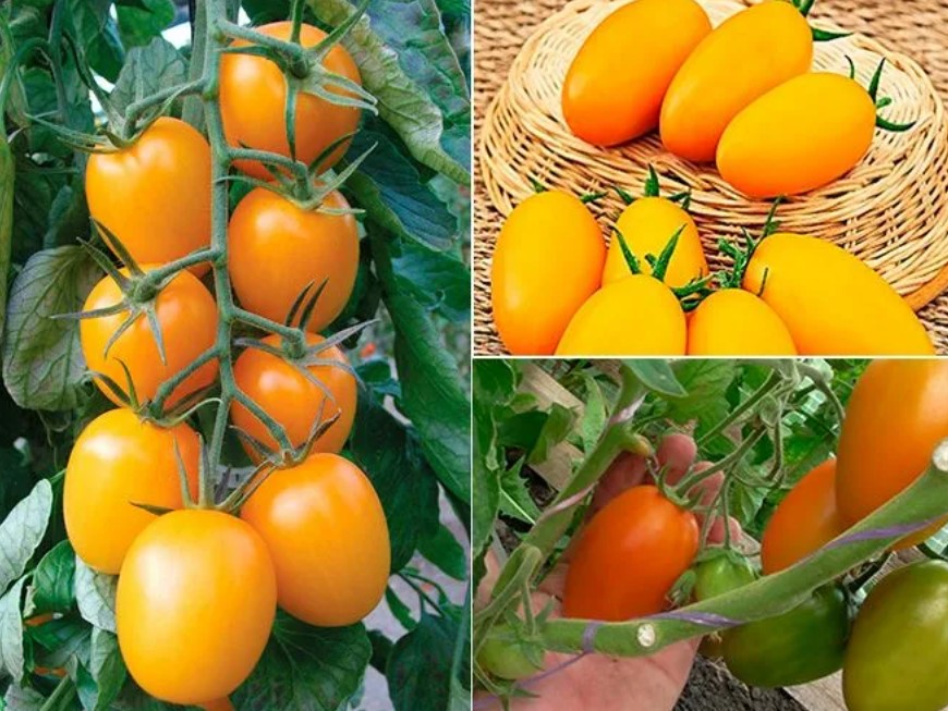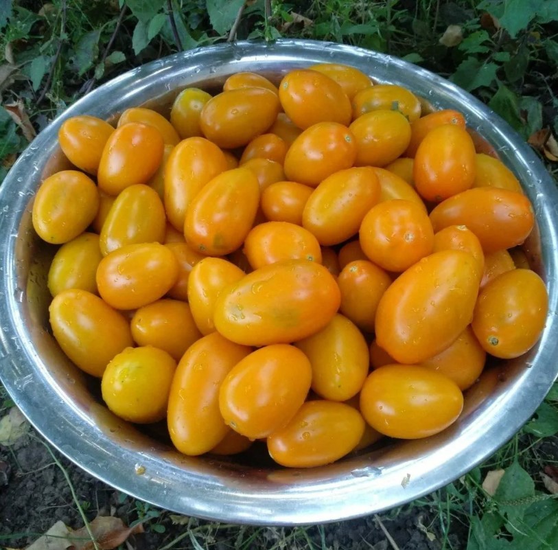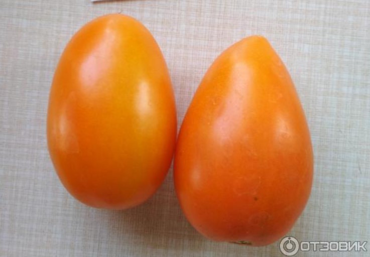 Самите домати са с ярък жълто-оранжев цвят. Те са с форма на слива, понякога със заоблен връх. Вкусът им е сладък и сочен. Вярно е, че произвеждат много малко сок и са практически безполезни за консервиране. Но са много приятни за ядене. Чудесни са в салати. А ако ги консервирате асортирани, те са просто гледка. През зимата е истинско удоволствие да отворите буркан с жълти и червени домати и зелени краставици. Освен това, този сорт има доста здрава, но тънка кора. Тези домати практически никога не се напукват по време на консервиране.