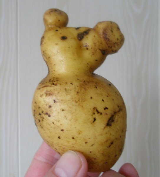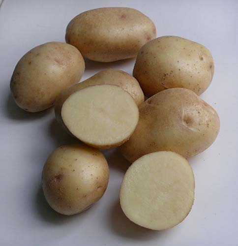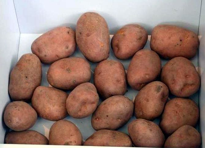 Грудките са кръгли. Малките, плитки очички се отстраняват лесно при обелване. Кожицата е песъчлива, а месестата част е малко по-светла. Съдържанието на нишесте варира от 13-18%. Устойчиви на много болести, с изключение на краста, ризоктония и късна мана.