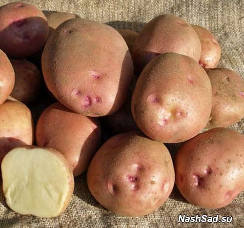 Средно късен, универсален сорт. Добив 248-437 ц/ха, с максимален добив 562 ц/ха (Волгоградска област). Храстите са ниски до средно големи, с полуизправени стъбла и зелени или изумрудени листа. Едри венчета с интензивно антоцианово оцветяване от долната страна. Овални грудки с малки до средно големи точки на растеж. Кожицата е жълта, а месестата част е снежнобяла.