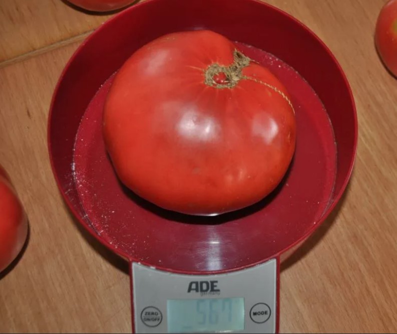 Гроздовете на доматите са прости, с от 3 до 6 плода на грозд. Плодовете са месести, с малко семена и течност, което е много привлекателно. Теглото на плодовете варира от 150 до 550 грама, със средно 300 грама. Вкусът е сладък, без намек за тръпчивост.