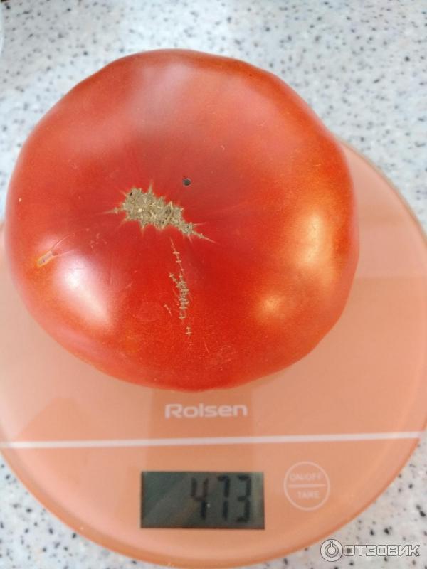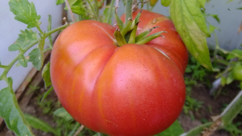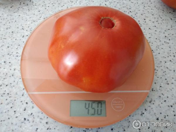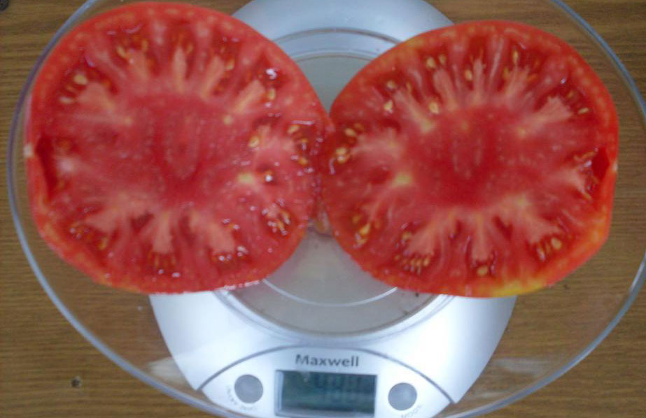 Този тежеше 450 грама. По-малък е, но все пак е впечатляващ. Другите домати също пораснаха доста големи, но тежаха около 300-350 грама. Мисля, че това е доста добър резултат.