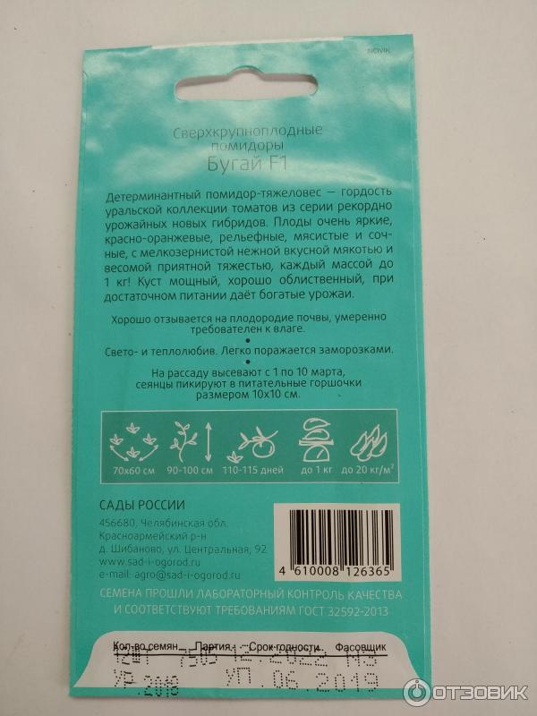 Днешното ми ревю е за семената на Sady Rossii "Pomidor Bugay F1"; поръчах ги и аз тази пролет. Много обичам да отглеждам големи, месести домати, защото моите консерви изискват по-големи. Рядко осолявам доматите, а за мариноване използвам например този сорт. Използвам ги главно за приготвяне на кетчуп, аджика и, разбира се, любимия ми доматен сок.
