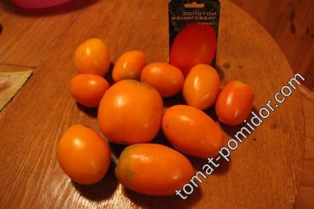 Засаждам „Златен Кьонигсберг“ вече четири години и е сред любимите ми. Добивът също не е чак толкова лош: тази година имах 16 (имах две стъбла). Бяха с красив оранжев цвят, много добър вкус и също така станаха по-издължени към върха. Плановете ми за 2015 г. включват: