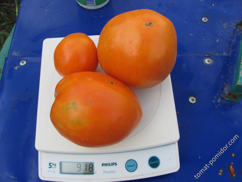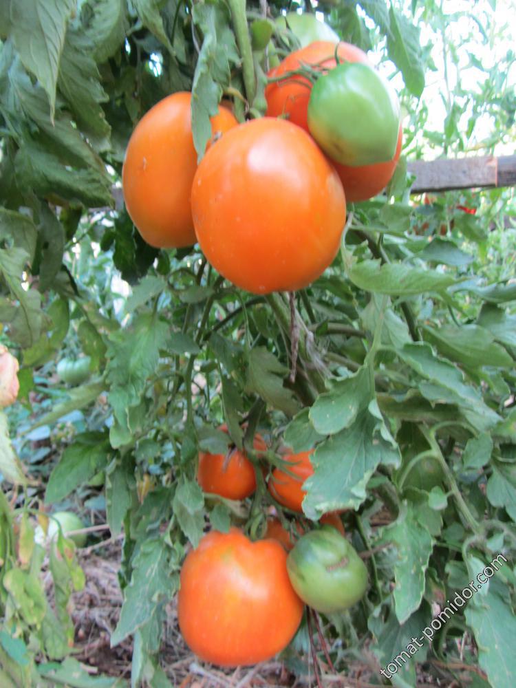 В открита земя растението не расте толкова високо, но все пак трябва да се връзва с колове, а самите домати обикновено са по-малки. Това не влияе нито на качеството, нито на количеството на реколтата. Това е много продуктивен сорт. Устойчив е на късна болест. Поне някои сортове са сред първите, които се заразяват. В оранжерия може да страда от гниене на цветовете. Плодовете са овални, оранжеви, месести, едри, сладки и много вкусни. Сокът има невероятен вкус. В оранжерия растението е лесно за отглеждане, защото не прераства, има увиснали листа и цветни кичури се появяват на всеки 1-2 листа, така че расте по-бавно от другите неопределени сортове. Когато се формира в едно стъбло, може да се засажда по-плътно. Тъй като това е култивар, а не хибрид, е възможно да съберете свои собствени семена.