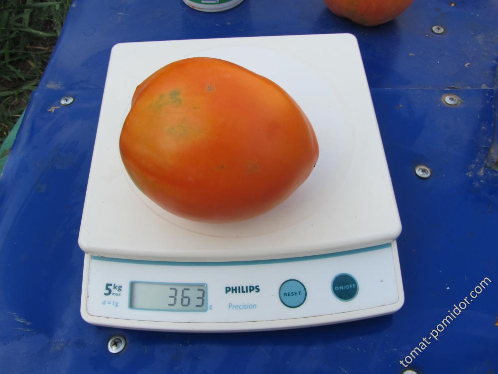 Едроплоден. Среднозрял сорт, отгледан от любители селекционери в Сибир. Индетерминантното растение достига височина 1,5-1,8 м. Дава добри плодове в оранжерии. Този сорт дава обилни, червени, удължени, с форма на патладжан плодове с тегло до 300 г. Плодовете са много еднородни, твърди и вкусни, и се съхраняват добре. Този сорт е аклиматизиран в Западносибирския регион.