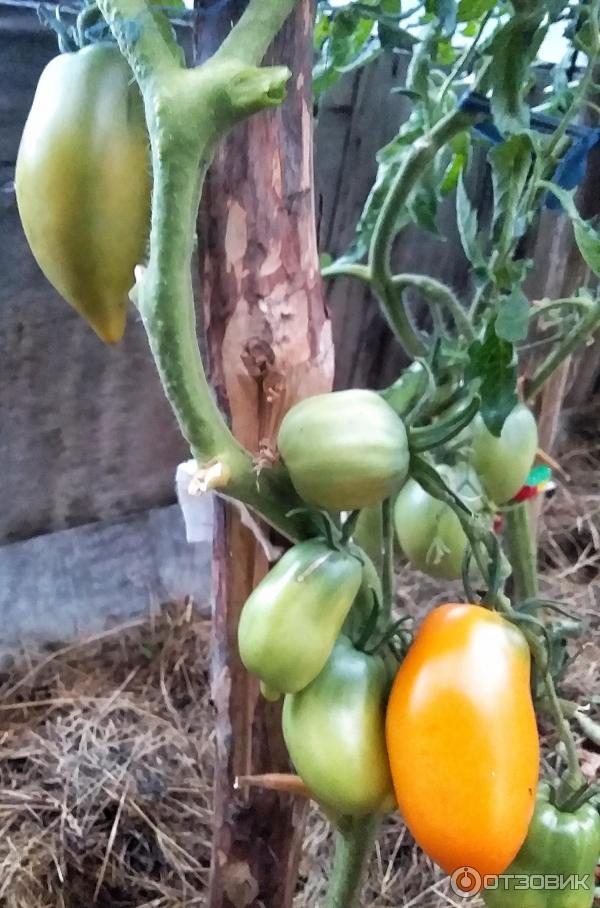 Дълъг и тънък е, с листа, висящи като заешки уши, всичките усукани десет пъти. Човек би си помислил, че доматът умира. Но винаги е така. Харесвам плодовете. Някой има ли такъв? Можете ли да ми кажете името?
