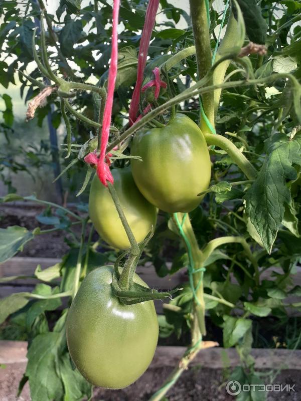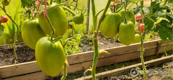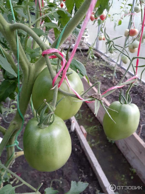 Грижите са същите, както за всички сортове: торене и поливане. Тази година използвах комплексен тор с микроелементи Здравен Турбо "Универсал" за зеленчукови, овощни и градински култури и напръсках яйчниците. Храстът расте до 1,9-2 метра. Трябва да се връзва с опъната тел на върха. При прищипване на страничните издънки се препоръчва растенията да се оформят в 1-2 стъбла, но аз оставих по три стъбла във всяко. Вече обясних защо правя това (моето ревю: Семена на домати от ЕТ Л. А. Мязина "Важна Персона F1").