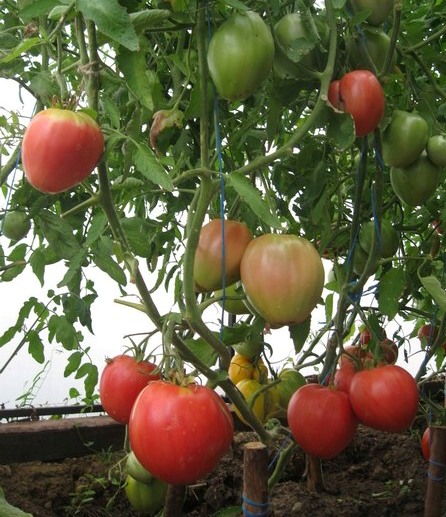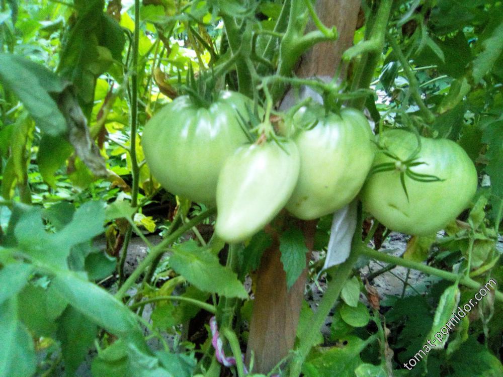 Този сорт е индетерминантно растение. Този домат расте в много голям храст, който може да достигне до два метра височина. Разбира се, такива растения изискват подпъхване и формоване, но сортът възнаграждава тази грижа с много високи добиви. Обичам да отглеждам тези сортове в двойни стъбла. Храстите наподобяват доматено дърво, гъсто отрупано с едри плодове с различна степен на зрялост.