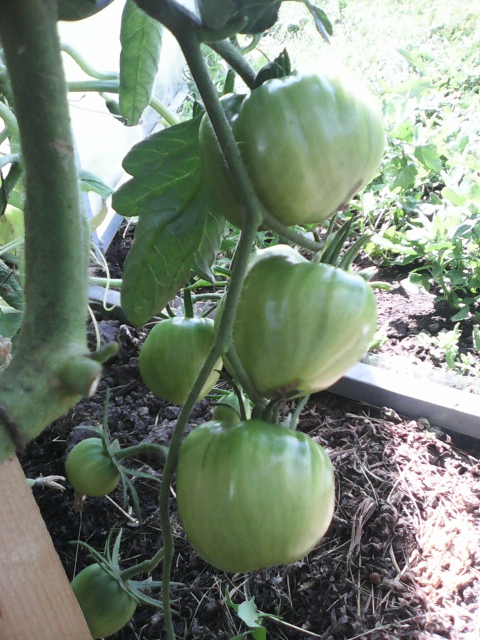 Най-тежките домати бяха на първата, втората и третата греда, дотолкова, че някои се наложи да бъдат връзвани. Най-големите домати достигнаха 800 г.