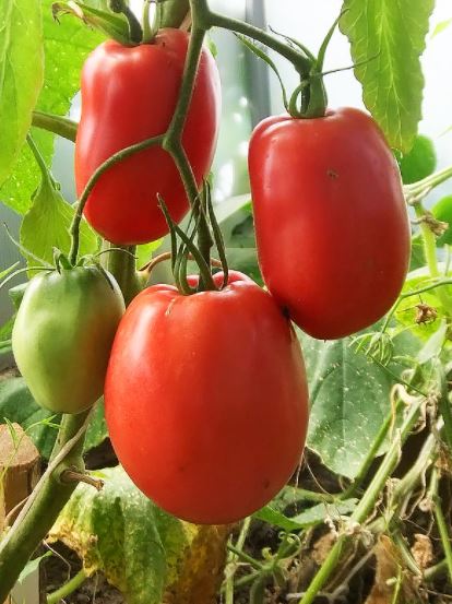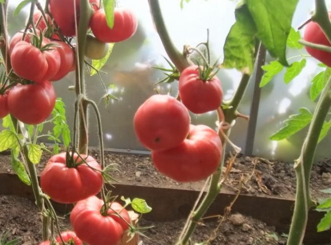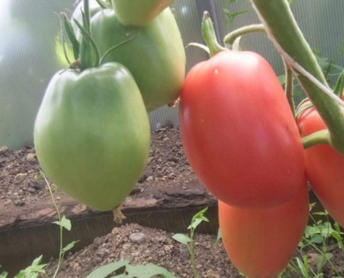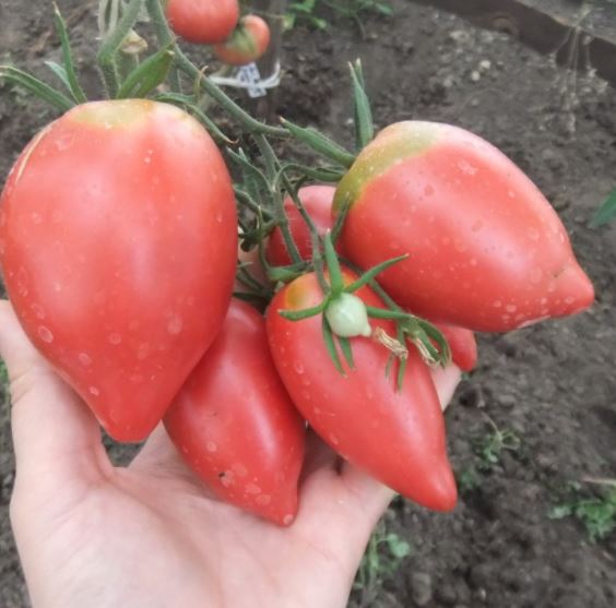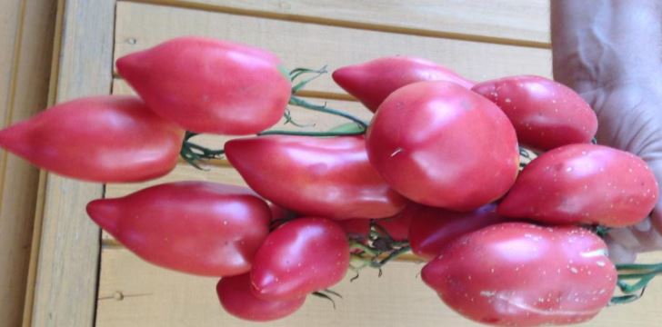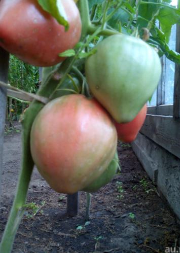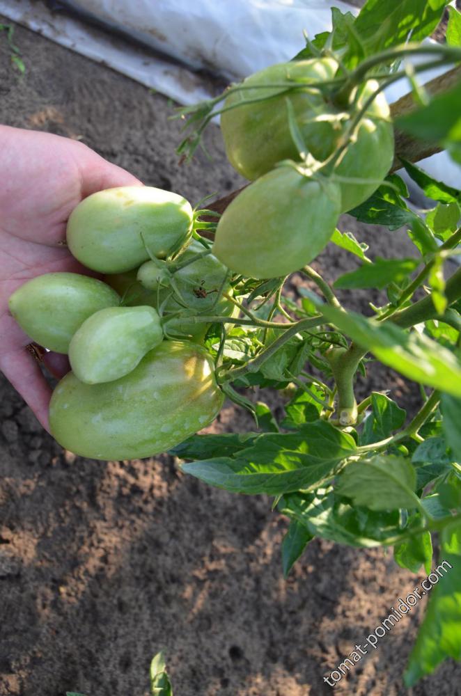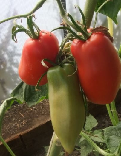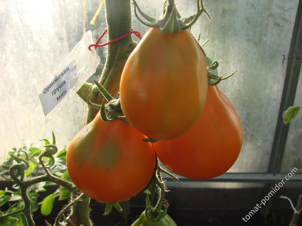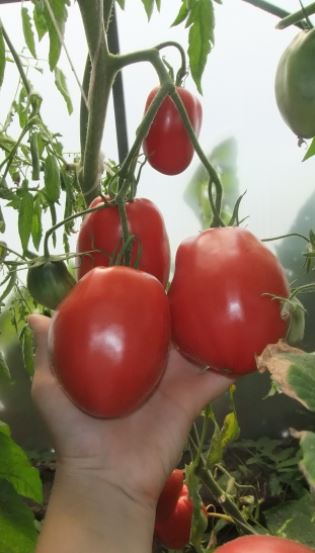 Сортовете бяха Червен едър, Волско сърце, Оранжеви и червени очила и Оранжева круша. Купих и Минусински гигантски розов, Минусински топчета и Минусински ябълкови топчета от колекционери. Всички ми харесаха. Някои бяха по-големи, други по-малки. Но забелязах, че са доста ранни. Работата е там, че в края на май имахме слана от -7 градуса по Целзий. Върховете на доматите в новата оранжерия замръзнаха, точно на ръба, където бяха Минусинските, с изключение на Груша (този сорт беше в друга оранжерия). Нагревателят беше точно по-близо до другия ръб. Трябваше да отрежа върховете. Появиха се странични издънки. Мислех, че това е, няма да има реколта. Оставих два странични издънки. Но накрая всички дадоха плодове, образуваха се няколко грозда и дори някои домати се зачервиха на храста, въпреки студеното и дъждовно лято.