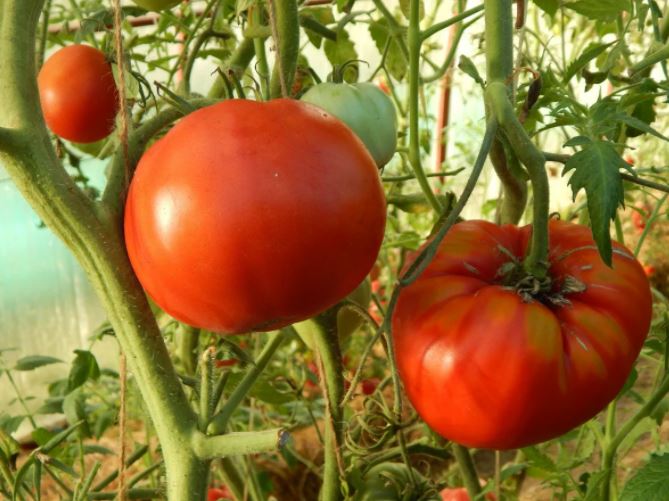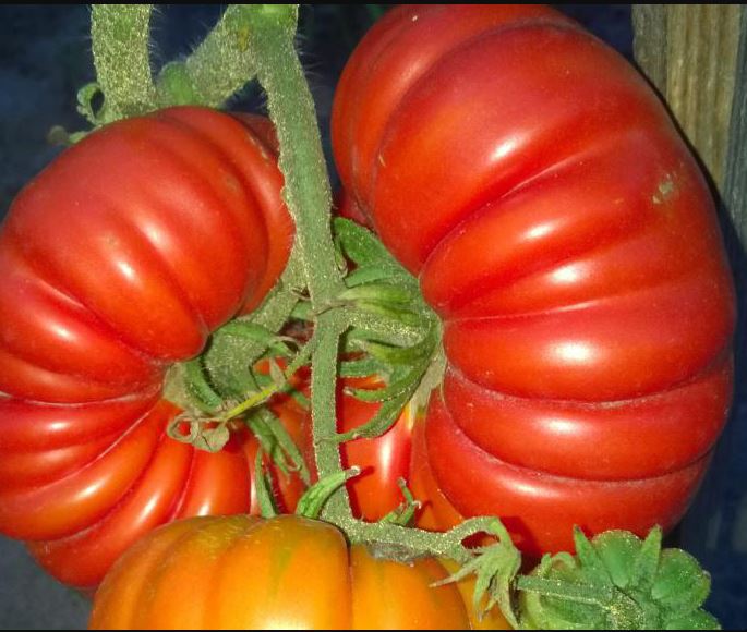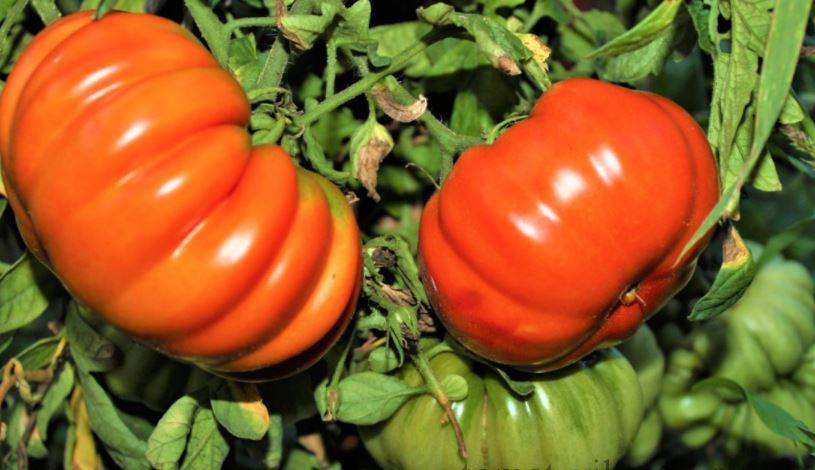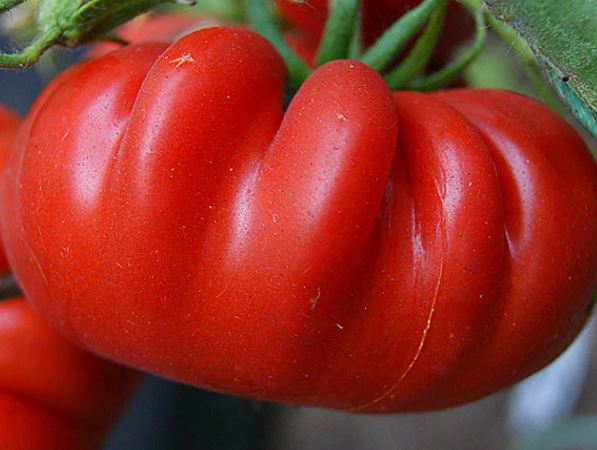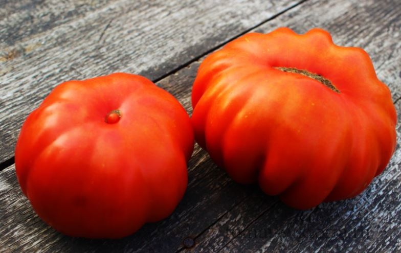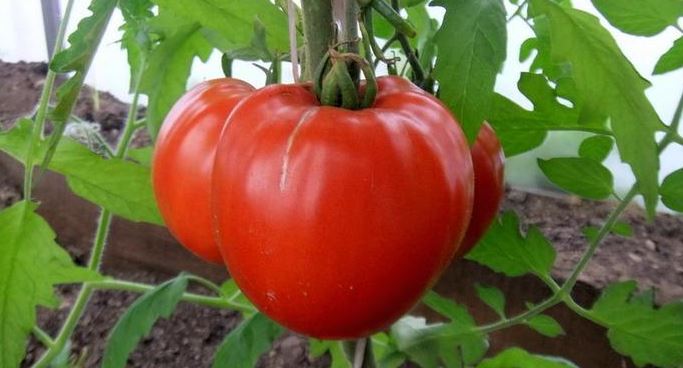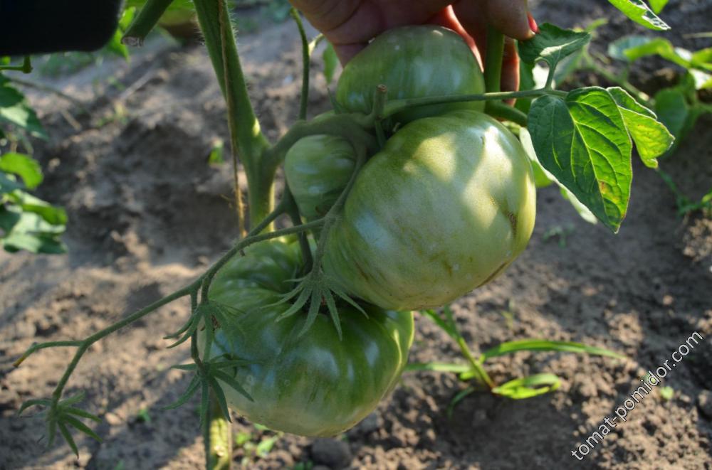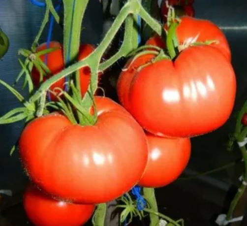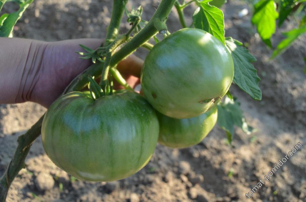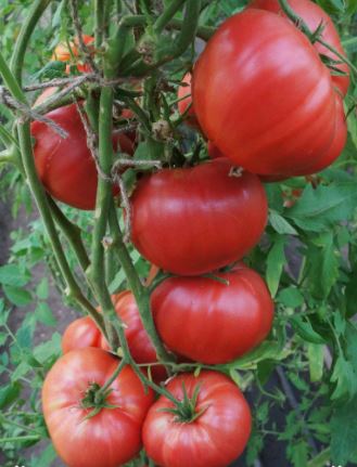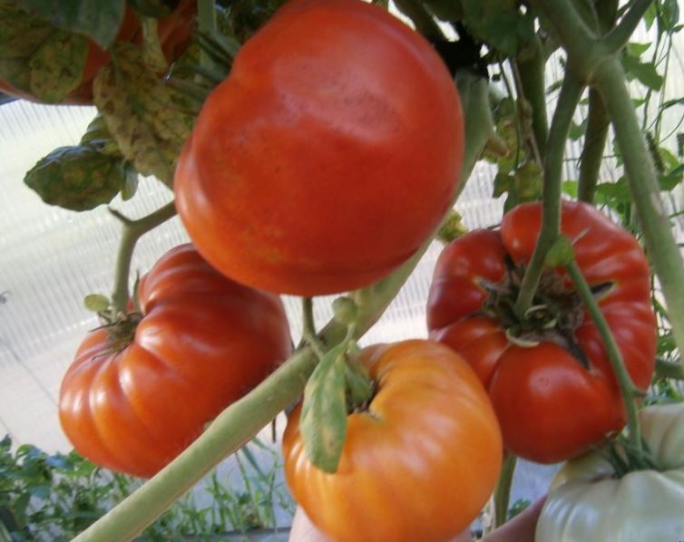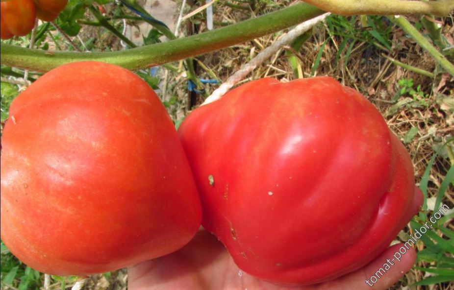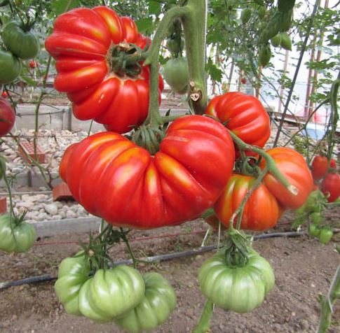 Среднозреещ индетерминантен сорт за оранжерии. Изисква подвързване и формоване на две стъбла. Подходящ за салати и преработка в доматени продукти. | Плоско-кръгли, оребрени, червени, до 500 г. Отличен вкус. |