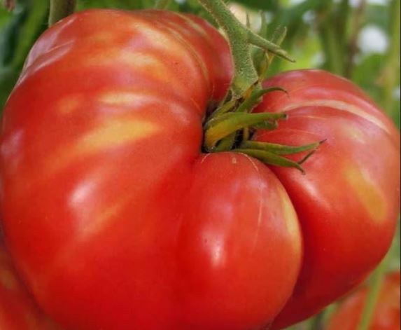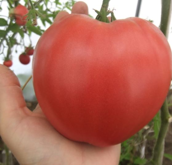 Среднозреещ индетерминантен сорт за оранжерии. Изисква подвързване и формиране на единични или двойни стъбла. Подходящ за салати и преработка в доматени продукти. | Кръгло-сърцевидни, оребрени, розово-червени, 150-250 г. Отличен вкус. |