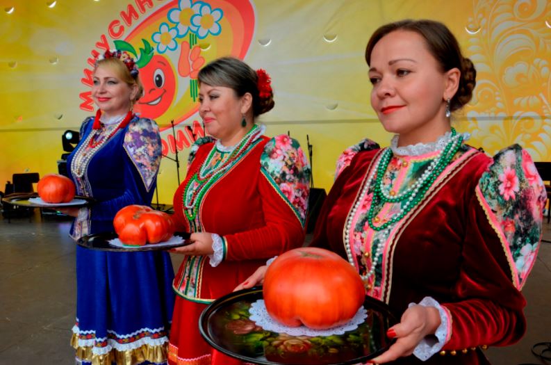 Домати, отглеждани в Минусинска област, са представени за първи път на изложба през 1912 г. от И. С. Старухин. Той получава бронзов медал за тях. Следващата изложба се провежда през 1913 г. Шестнадесет участници представят шест сорта. Старухин представя на журито седем големи домата с тегло между 562 и 766 грама. За това агрономът получава 10 рубли – достатъчно, за да си купи крава по онова време.