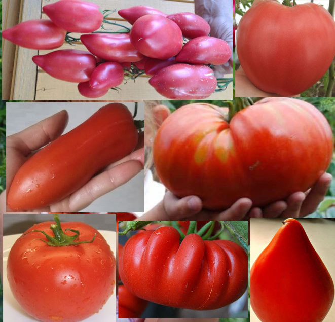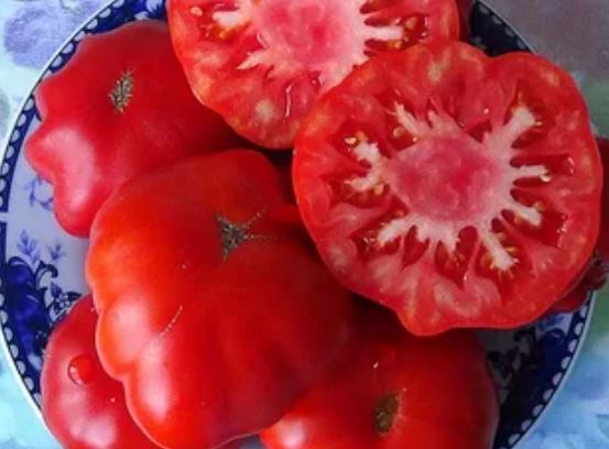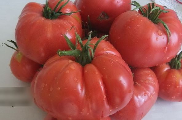 Ранен индетерминантен сорт от сибирски селекционери. За салати, сок и паста. | Сърцевидни, оребрени, розови, 400-600 г. Отличен вкус. |