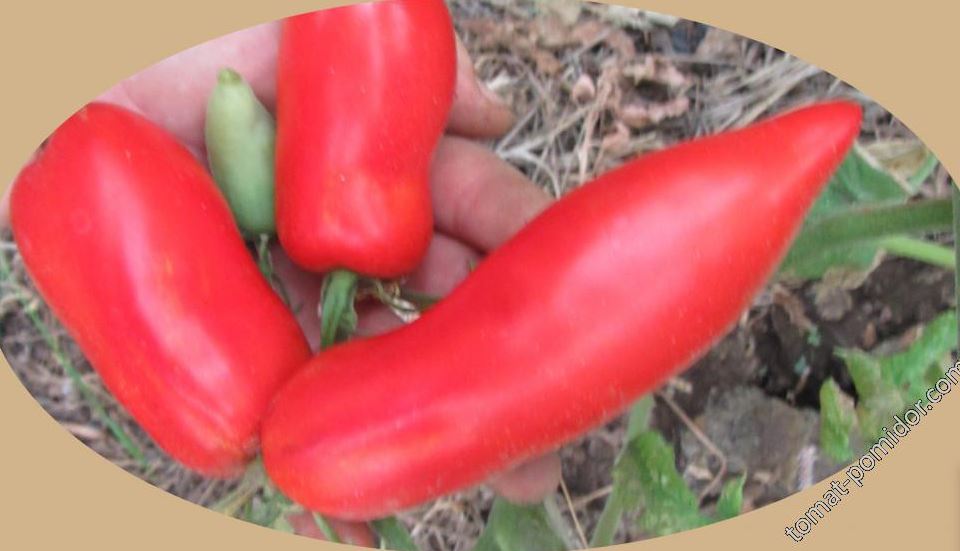 Минусинска с форма на пиперОтне им много време да растат; набрах последните в края на септември. Бяха вкусни, месести и не сухи. Върхът им беше съвсем малко изкривен, но непрекъснато откривах, че всеки плод няма заострен връх, а тъмно петно. Но те пораснаха големи и бяха вкусни, въпреки петното. Имаше по три или четири на един храст.