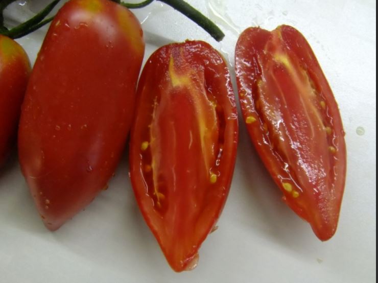 Среднозреещ детерминантен сорт за открита почва. Подходящ за салати, консервиране на цели плодове и преработка в доматени продукти. Устойчив на топлина и суша. | Яйцевидна форма, гладка, транспортируема червена, 59-83 г. Вкусът е добър до отличен. |