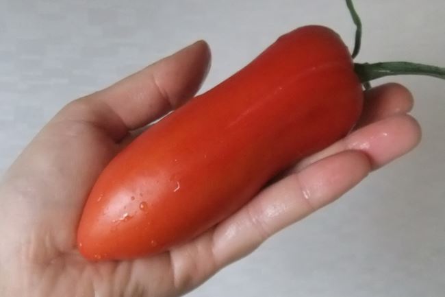 Среднозреещ индетерминантен сорт за открита земя. Изисква подравняване и формоване. Подходящ за салати и преработка в доматени продукти. Продаваемост: 56% (Новосибирска област). Устойчив на топлина. | Цилиндрична, гладка, плътна, с добра съхраняемост, червена, 155-230 г (до 300 г). Отличен вкус. |