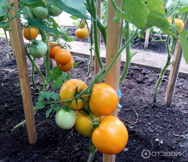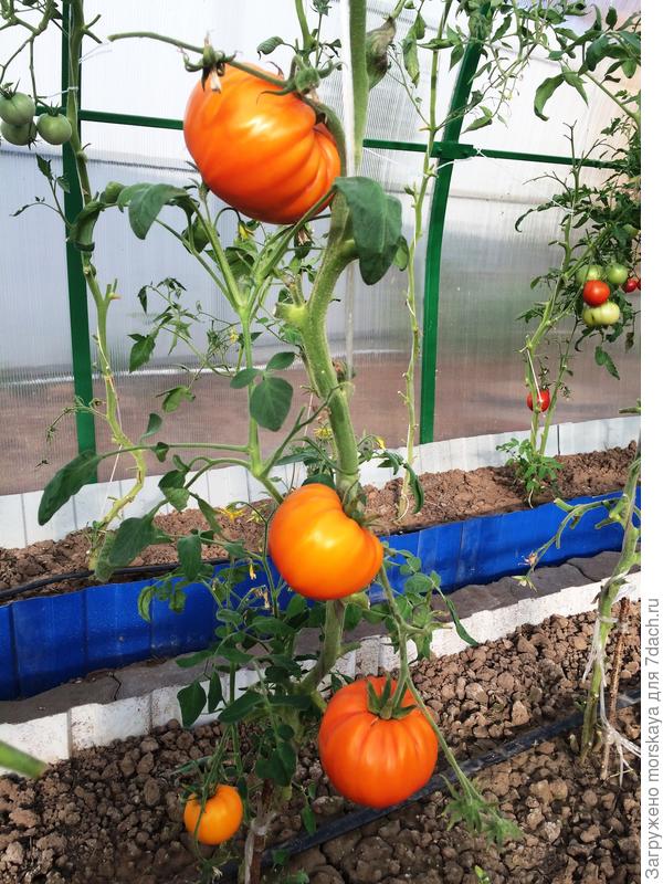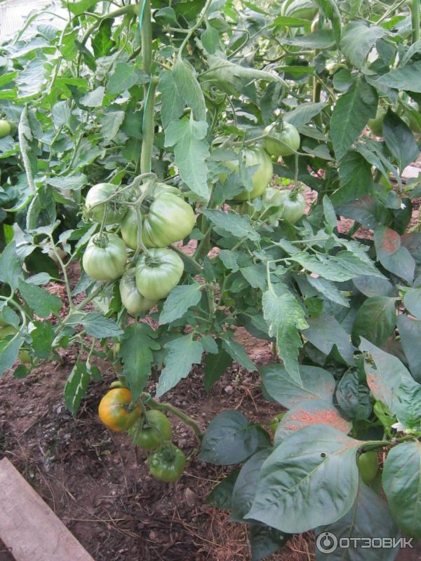Изисква повече място. Растението е разпръснато. Оптималната схема на засаждане е 50x60. Производителят не е излъгал. Не трябва да се засаждат повече от четири растения на квадратен метър. Аз ги засадих по схема 40x60. Може би затова не бях впечатлен от този сорт. Като цяло, тазгодишното лято в Московска област беше необичайно. Всички имаха проблеми с доматите. Съдя по другите сортове; добивите им бяха по-добри.