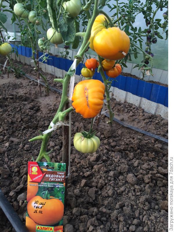 Ако харесвате сладки домати без киселинност, това е сортът за вас. Има домати без киселинност и някои, които са безвкусни. Но тези не са такива; те са много вкусни, наистина като мед. Доматът „Меден гигант“ е подобен, но не е толкова сладък. Давам на този сорт солидна оценка „отлично“. Ако все още не сте го опитали, препоръчвам да го засадите. Определено ще го отглеждам отново в бъдеще.Тази година засадих и жълти домати като „Оранжев слон“ от компанията „Гавриш“, „Бананови крачета“ и „Оранжева ягода“.