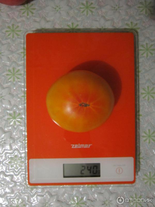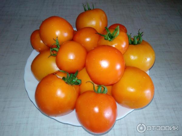 Среднозреещ индетерминантен сорт за открита земя и оранжерии. Изисква подравняване и оформяне. Подходящ за салати. Продаваемостта е 98%, а добивът на зрели продаваеми плодове е 74% (Новосибирска област). Устойчив на неблагоприятни условия на отглеждане, устойчив на топлина и лесен за транспортиране. | Кръгли, гладки, оранжеви, 160-218 г. Отличен вкус. Плодовете се съхраняват добре. |