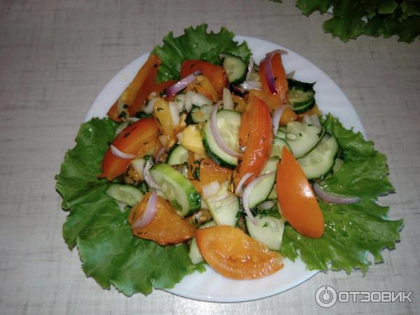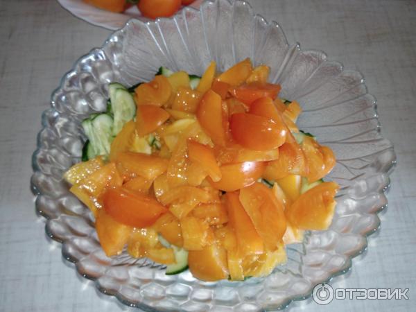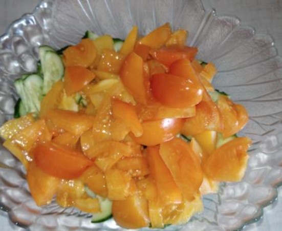 Меденожълтите резени домати изглеждат красиво в салатите.