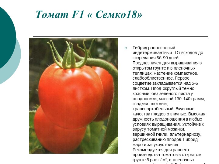 Характеристики на сорта домати Semko 18 F1