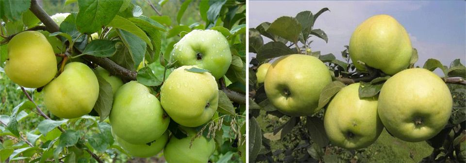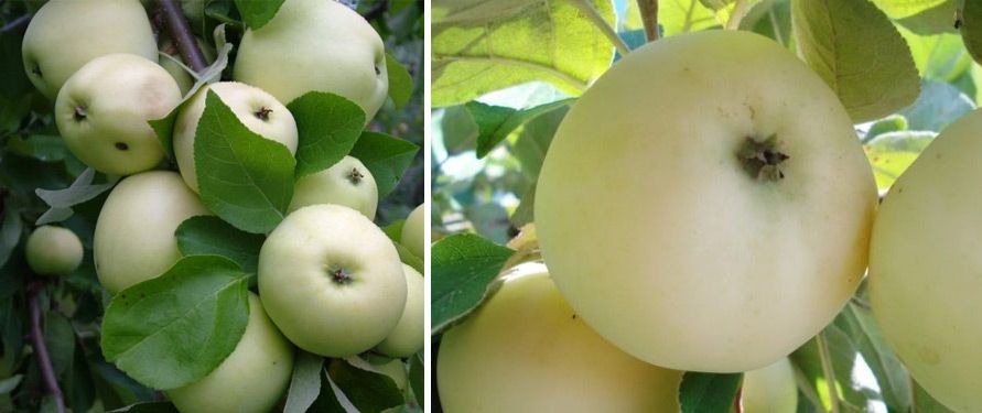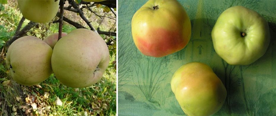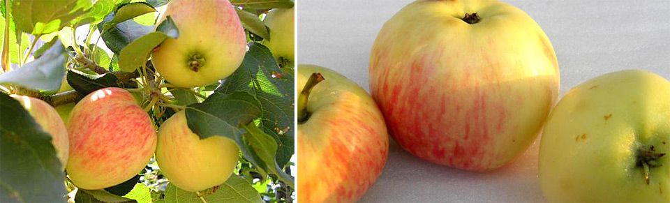 Големи кръгли ябълки с бяло-зеленикава плът, силен аромат, добър вкус.