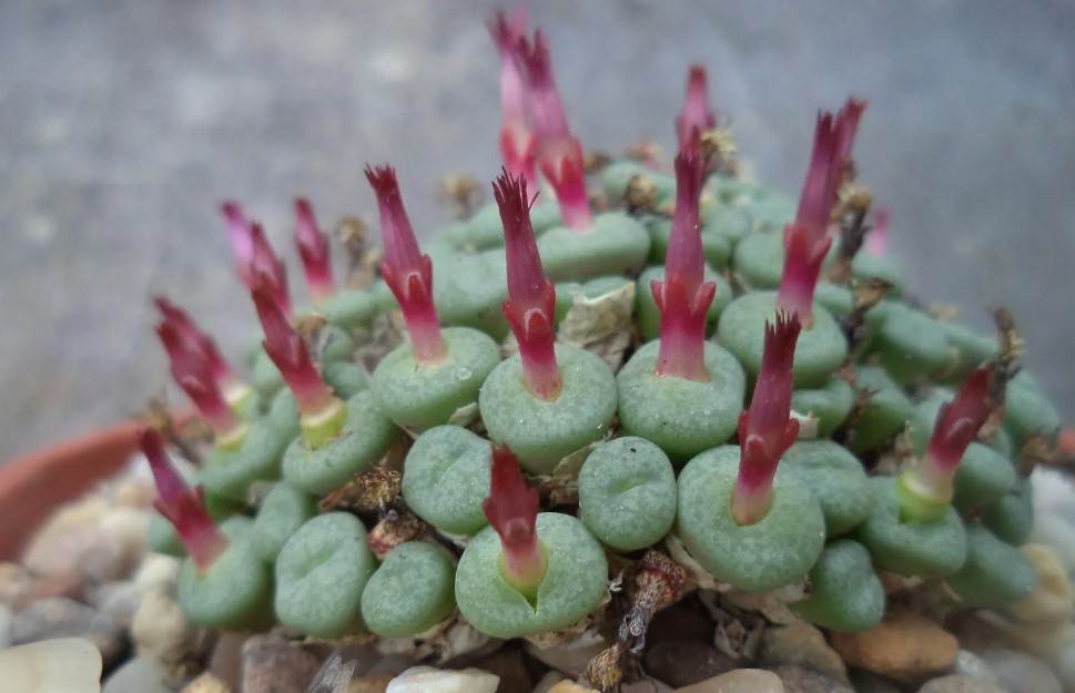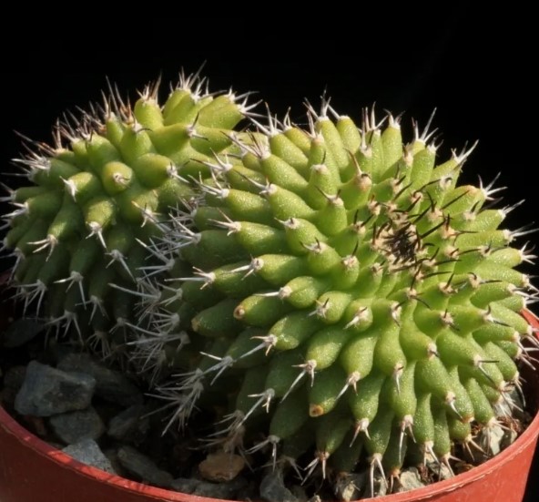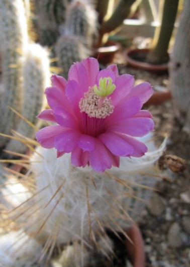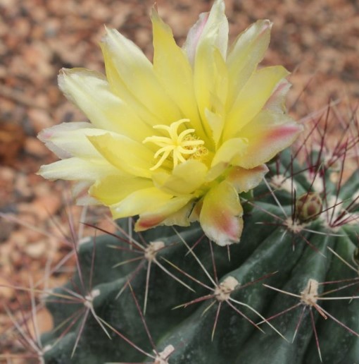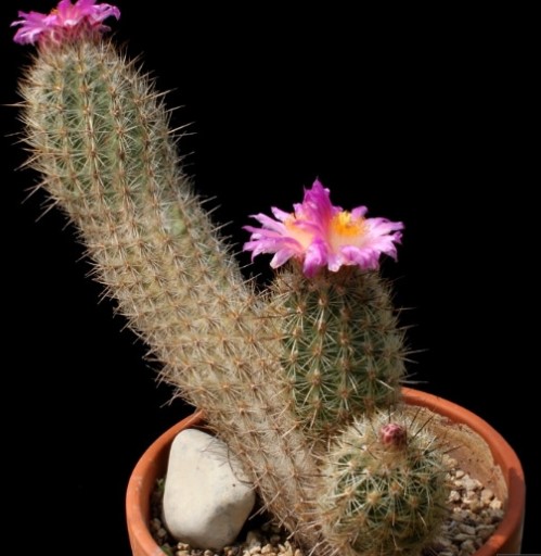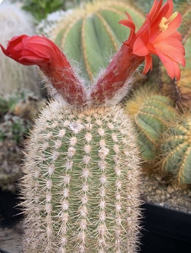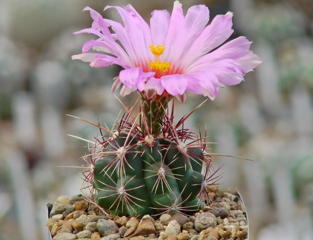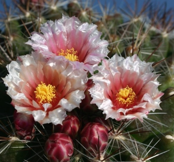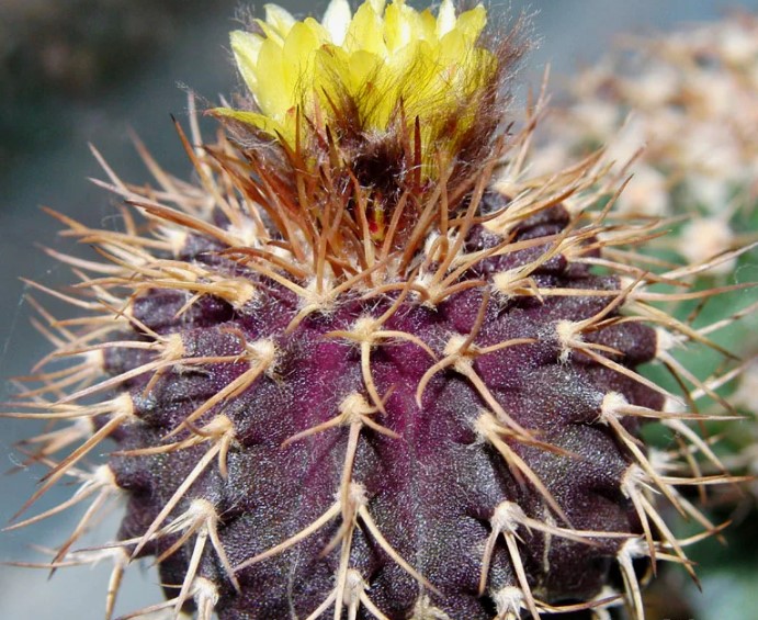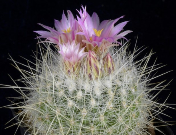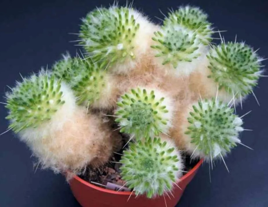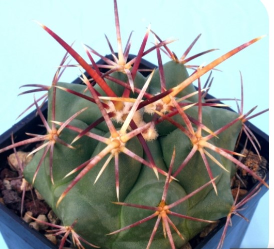 Семейство: Кактусови. Произхожда от югозападната част на САЩ и Мексико. Сферична форма с множество изпъкнали ребра и бодли. Цветовете са мъхести и се предлагат в червено, розово и жълто.