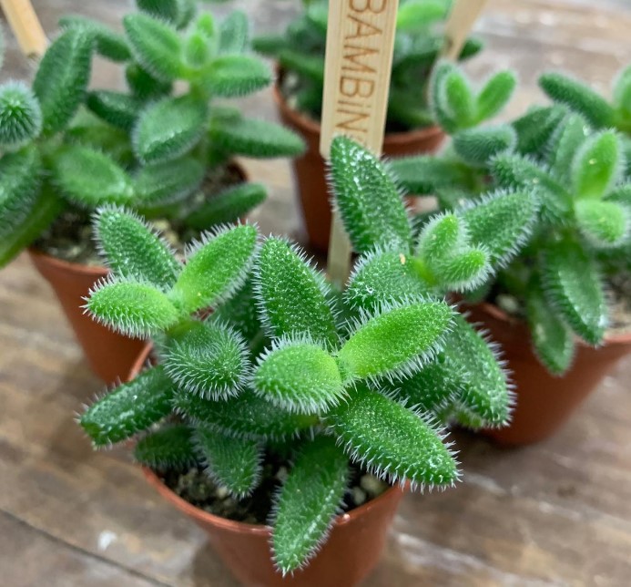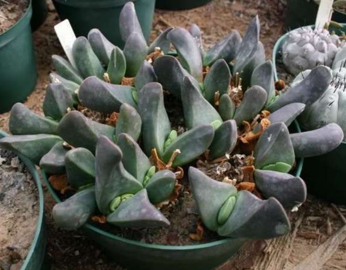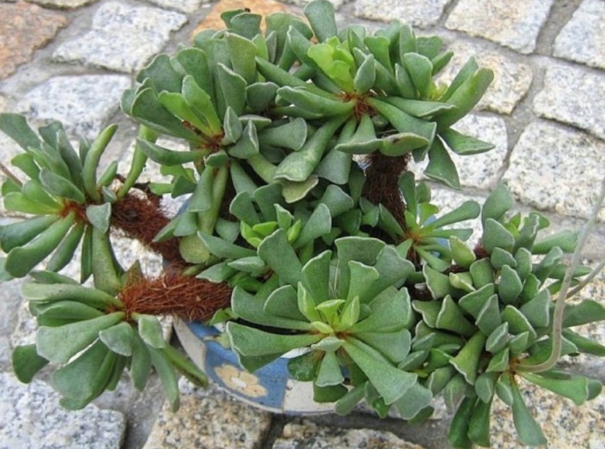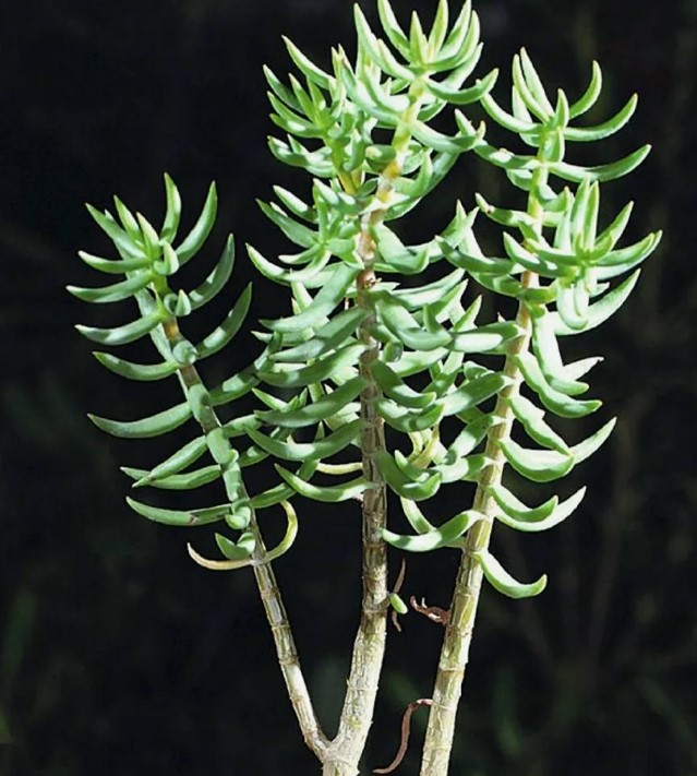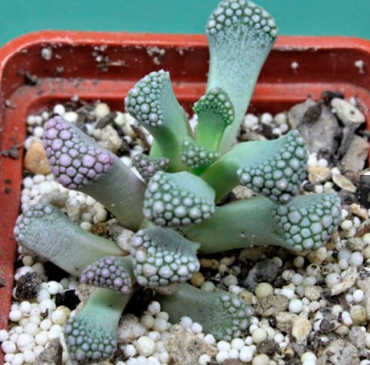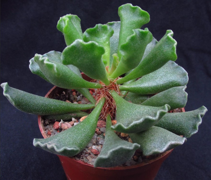 Семейство: Crassulaceae. Произхожда от Южна Африка. Вечнозелено растение с необичайно оформени, сиво-зелени листа.