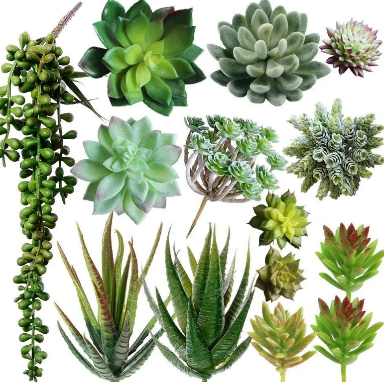 Те имат листа, които съхраняват влага. Класически примери за такива сукуленти включват нефритеното растение, алоето и седума. Съществуват обаче и много други разновидности.