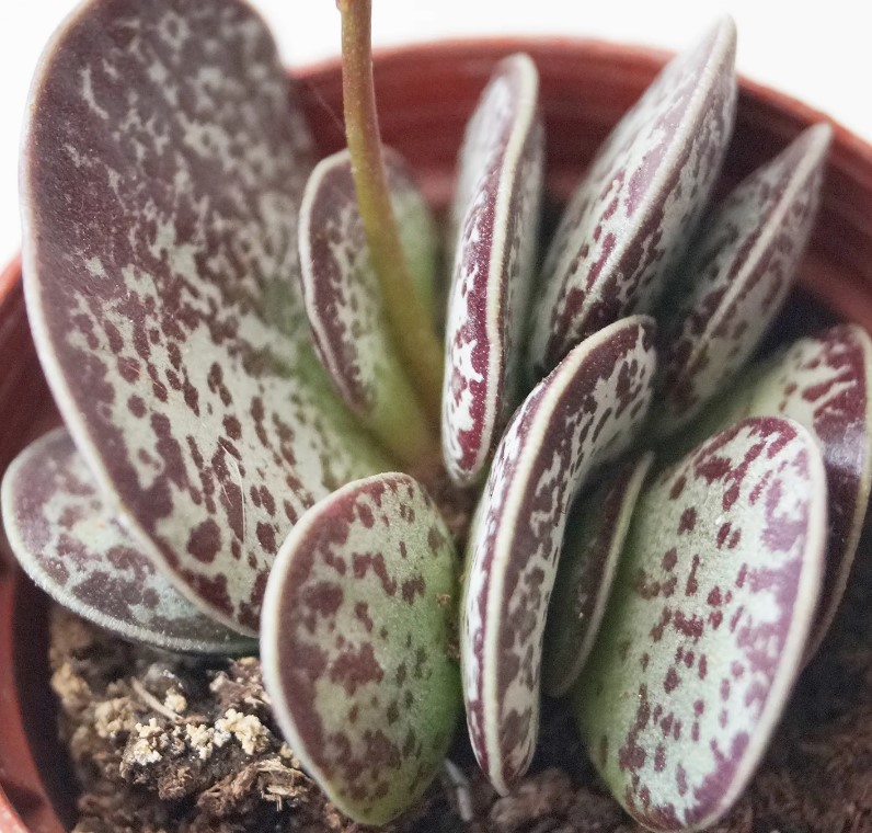 Малко растение около 25 см, с оригинални листа във формата на лопата или обратнояйцевидна форма. |
