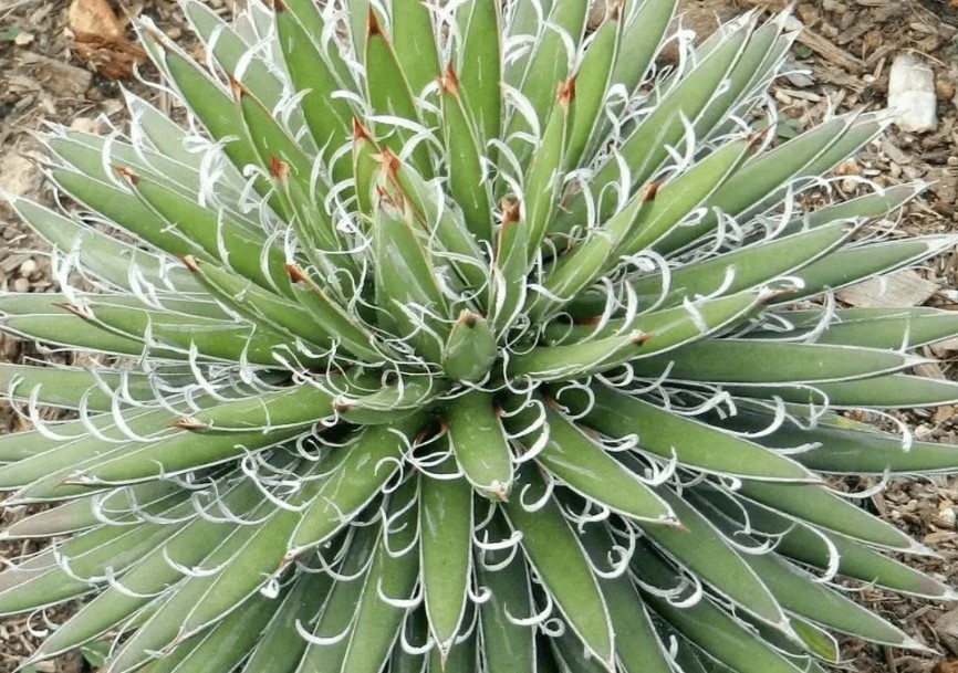 Компактно многогодишно растение с височина около 70 см. В краищата на листата има малки бодли с дължина до 1 см. По краищата висят дълги бели нишки. |
