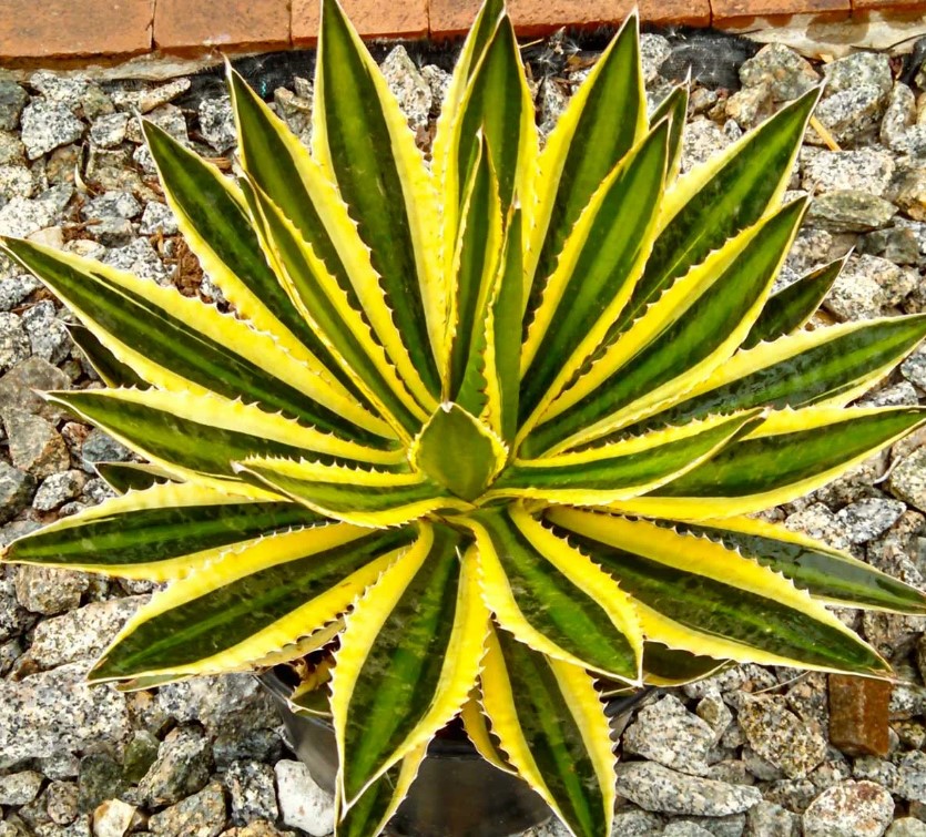 Компактен растеж. Върховете на стъблата са къси, твърди и остри. Листата имат жълт кант. |