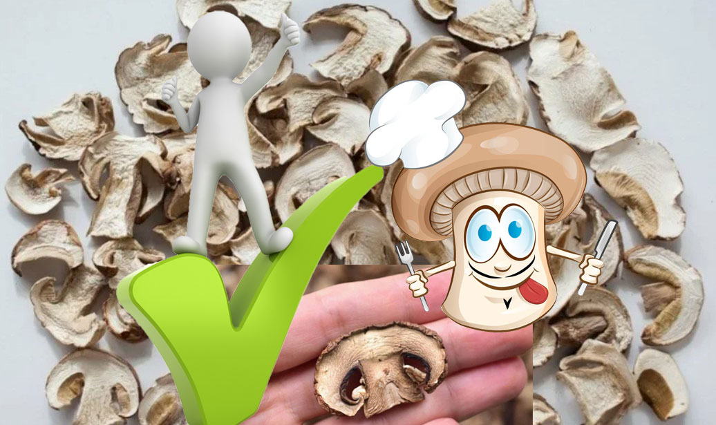 Шампиньоните могат и трябва да се сушат. Сушените гъби са богати на витамини и имат отличен вкус. По хранителна стойност те дори превъзхождат маринованите и осолени гъби.