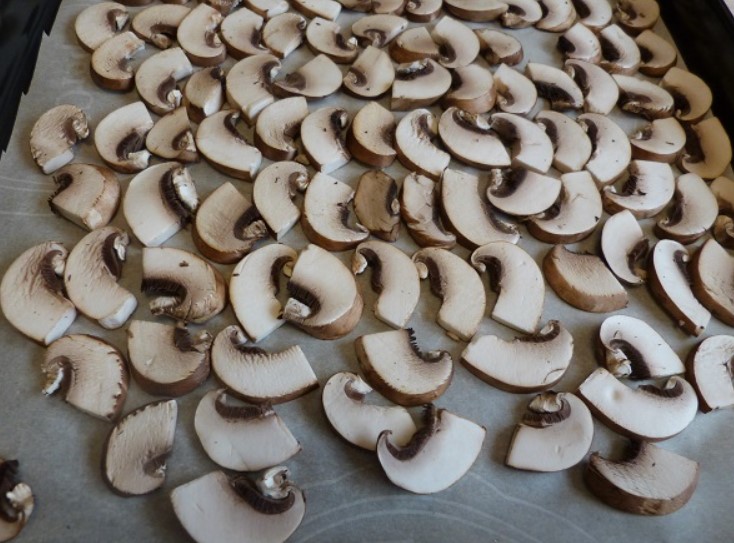 - За да се изсушат равномерно, нарежете гъбите на тънки филийки.