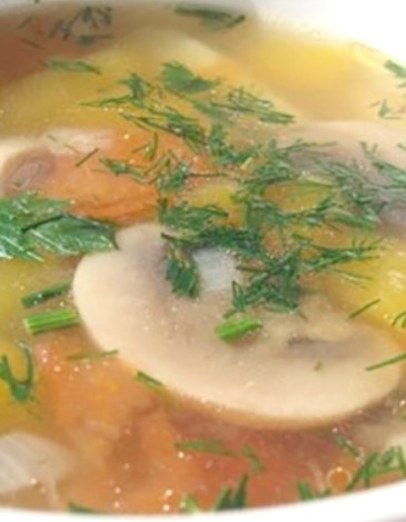 Диетична супа с печурки и пилешко месо
