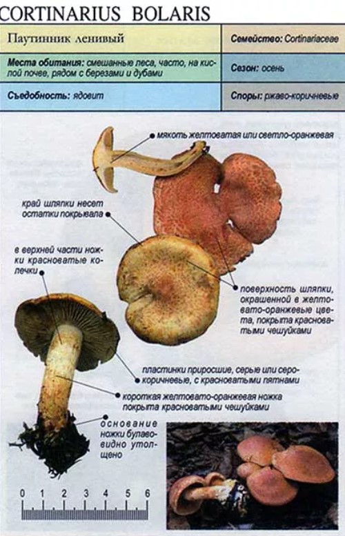 Отличава се с малка шапка, не повече от 7 см в диаметър, с видими червени или оранжеви люспи по повърхността ѝ. Стъблото е високо до 6 см и с диаметър до 3 см. Расте както в иглолистни, така и в широколистни гори.