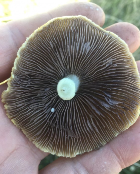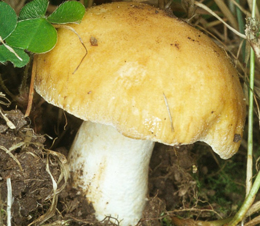 Диаметърът на шапката варира от 8 до 12 см, първоначално е сферична, след което се сплесква. Цветът е жълто-кафяв или жълт. Повърхността е слузеста. Месото потъмнява след разрязване.