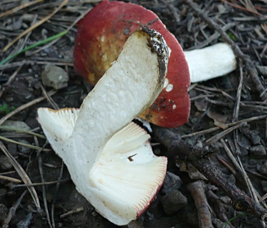 Зачервяване на фалшива русула (Russula fuscorubroides)