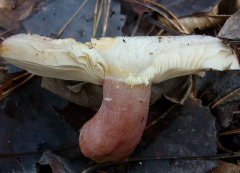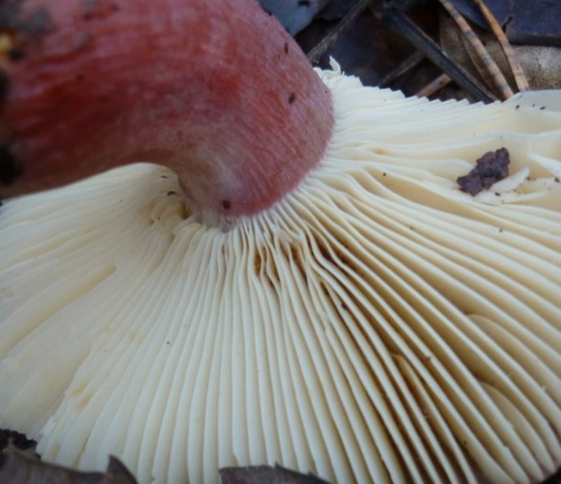 - Хрилете, разположени в основата на шапката на гъбата, винаги са бели. Тази характеристика винаги присъства при зрелите гъби; младите русули също имат екземпляри със светли хриле.