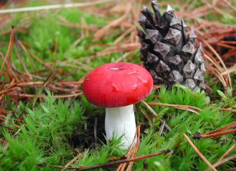 От май до октомври гората е пълна с различни гъби, а русула се среща навсякъде.