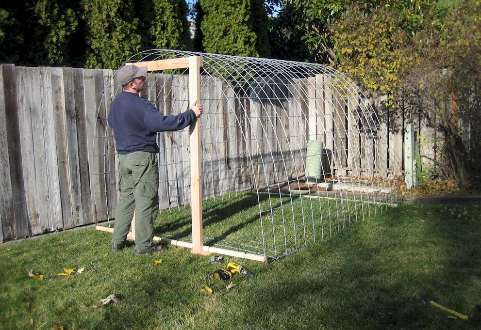 Пръчките се оформят в дъги, които се вкопават в земята на всеки 1-1,5 метра. Този метод е най-простият, но по-малко надежден.