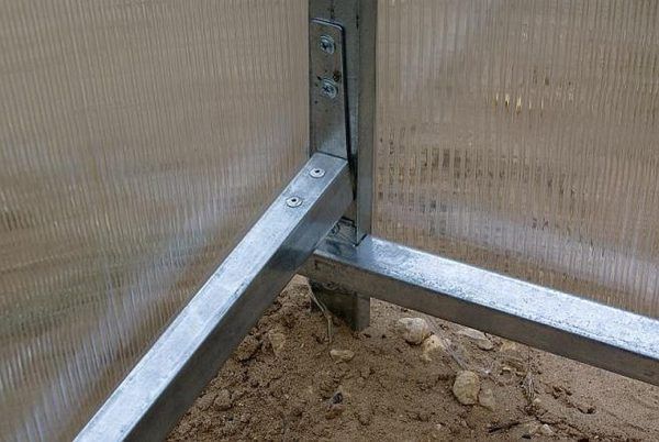 При използване на стоманени ъгли, оранжериите се сглобяват с двускатни или едноскатни покриви. Рафтовете са с размер 2-3 см и дебелина 3 мм или повече.