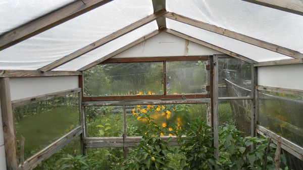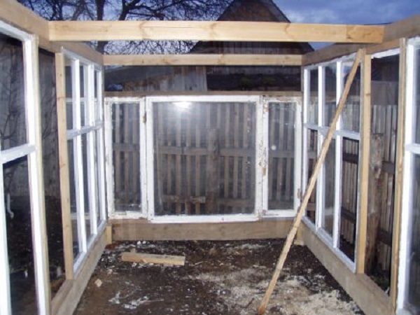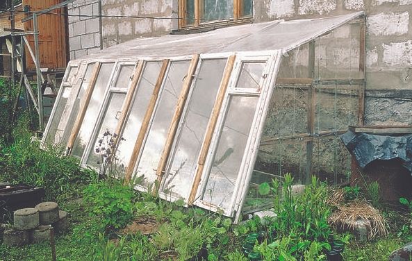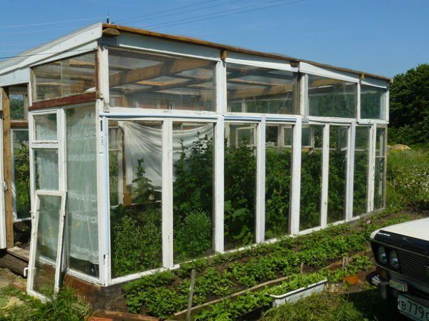 Стъклена оранжерия, направена от стари рамки на прозорци