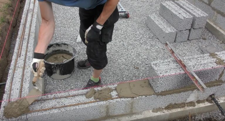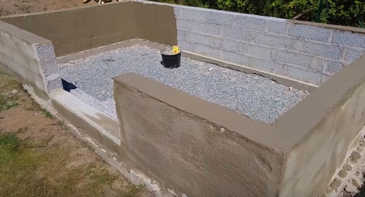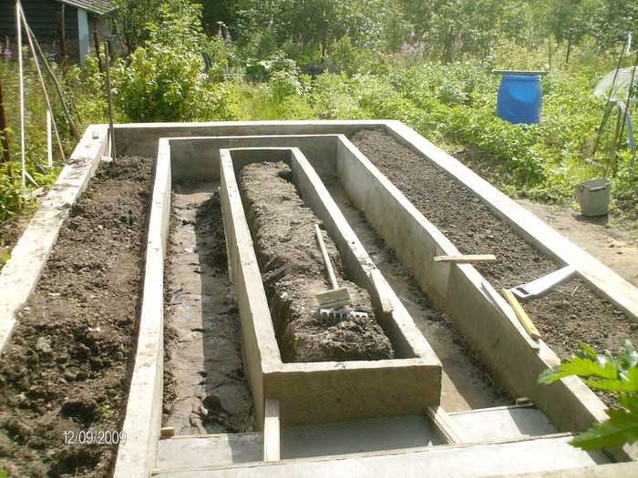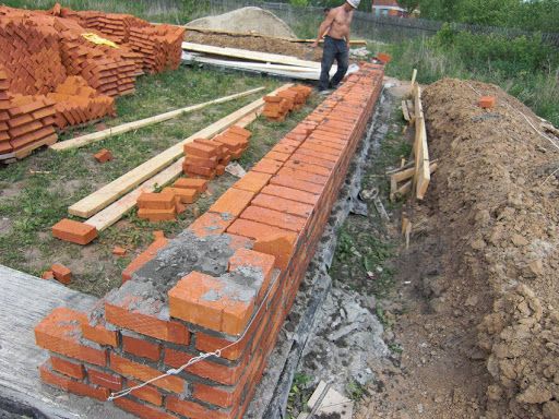Предварителните маркировки се правят с помощта на колове и въжета. След това се изкопава и уплътнява изкоп с дълбочина 30 см. Дъното се запълва с пясък (за да се образува пясъчна възглавница), върху дъното се полагат стоманени арматурни пръти с дебелина 8 мм (обикновено поне 3 мм) и изкопът се запълва с бетон.