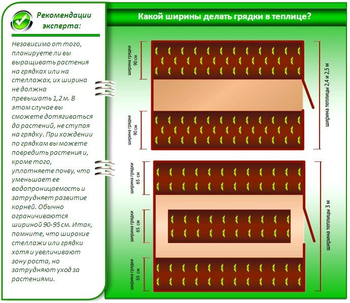 Обикновено в оранжерия правя 2-3 лехи, между които полагам пътеки с ширина 0,5 м.