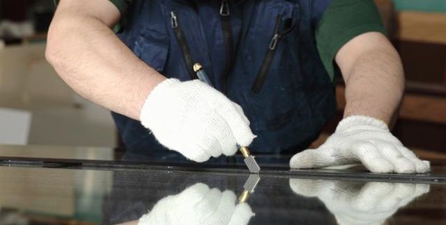 Най-добре е рязането на стъклени листове да се повери на професионалист. Материалът трябва да бъде обезмаслен. Трябва да се спазва правилото за едно рязане. Имайте предвид, че размерите на листа трябва да са с 2-3 мм по-малки от пролуките между гредиците. Това се прави като превантивна мярка, тъй като дървото може да окаже натиск върху стъклото, докато се набъбва.