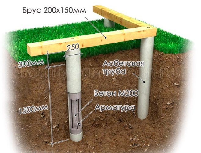 - На много стабилна почва и ниско тегло на оранжерията се използват стълбове, изработени от блокове, бетон и тухли.