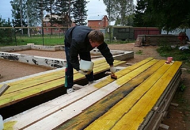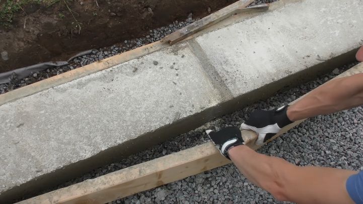 - формиране на кофраж (за предпочитане с дъски), който трябва да се издига на 5 см над нивото на земята, препоръчителната дебелина на дъските не трябва да надвишава 2,5 см;